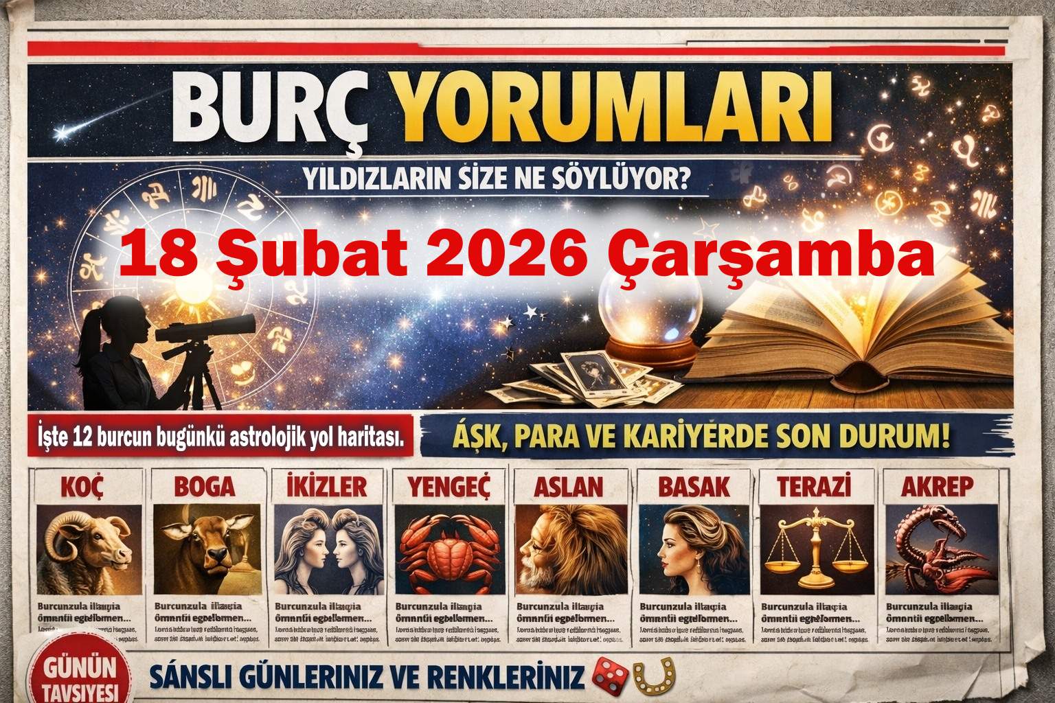 18 Şubat 2026 Çarşamba Günlük Burç Yorumları: Aşk, Para ve Kariyerde Sürprizler